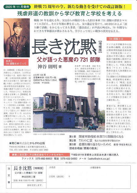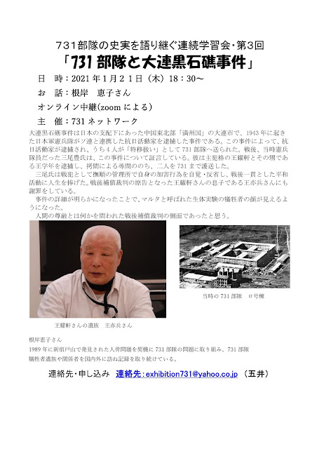 20201107 UPLAN 西里扶甬子「生物戦部隊731研究の現在地~今を生きる日本人が知るべきこと」