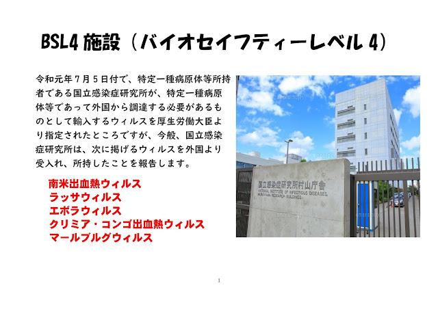 ※以下の記述から、自衛隊では、いま世界で流行している新型コロナウィルスなどの生物兵器の研究も大分以前からやっているといるのではないかと思われる。